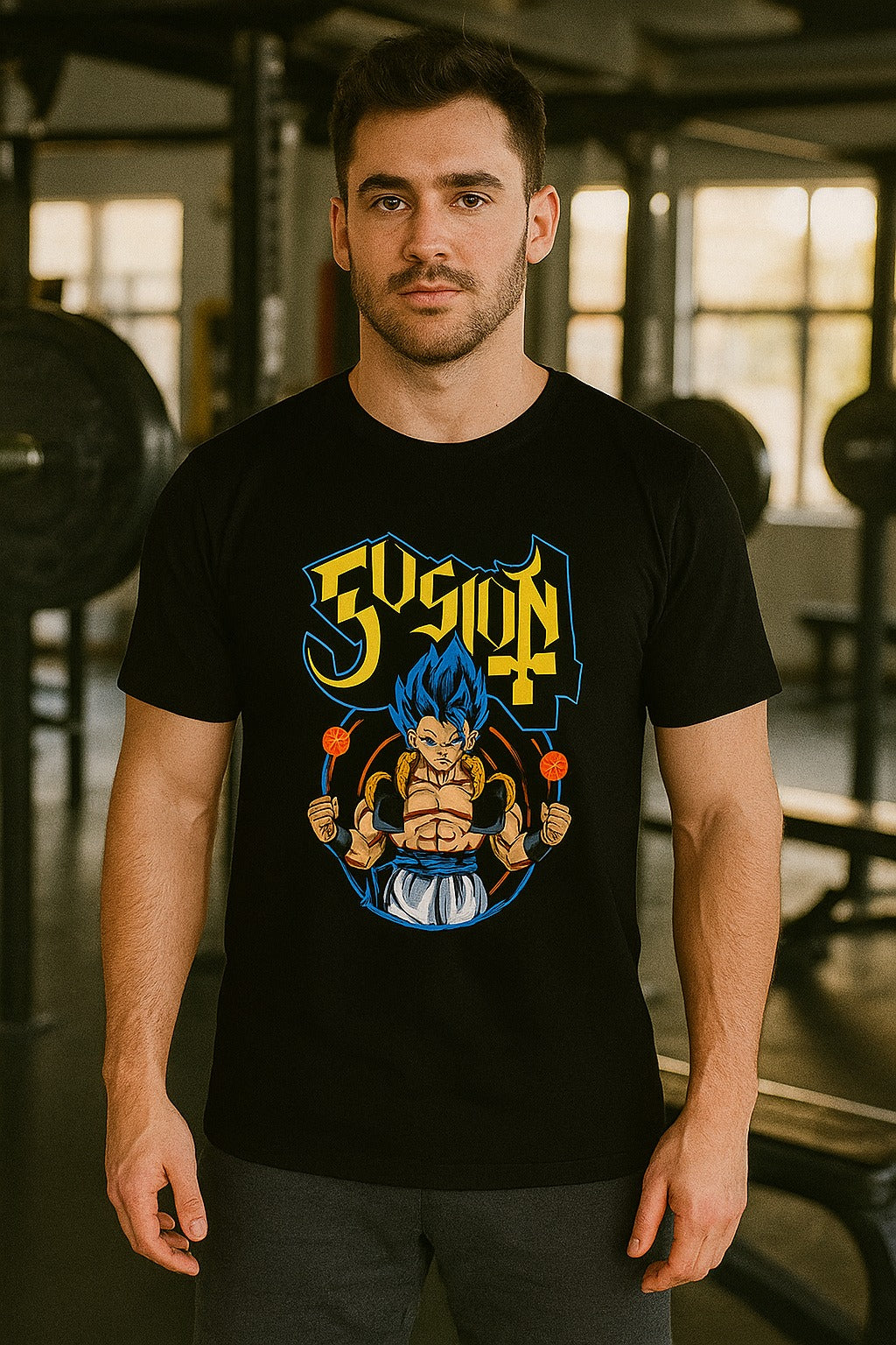 Bring unstoppable energy to your wardrobe with this explosive Fusion Warrior tee! Featuring a fierce, blue-haired warrior channeling ultimate strength and rocking the iconic “Fusion” typography, this shirt is a must-have for Dragon Ball Z fans who live for transformation scenes and epic battles.