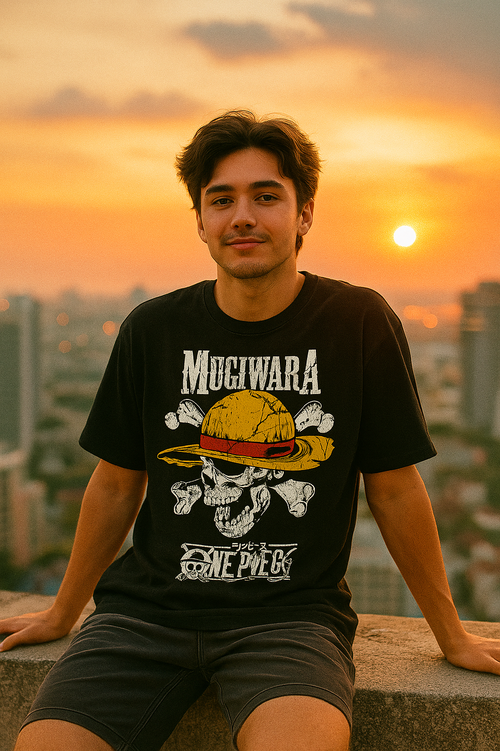 Set sail with bold style in our Oversized "Mugiwara" Skull Tee, inspired by the legendary anime One Piece! Featuring a gritty skull-and-crossbones design wearing the iconic Straw Hat, this shirt pays homage to Monkey D. Luffy and the fearless Straw Hat Pirates.